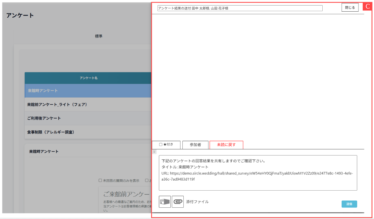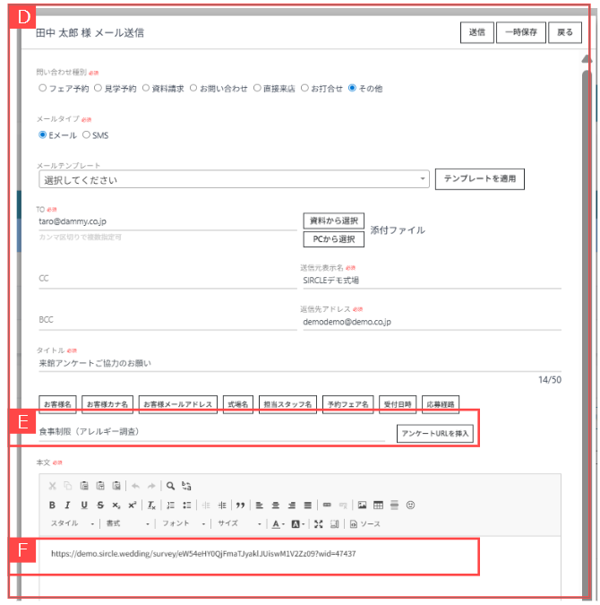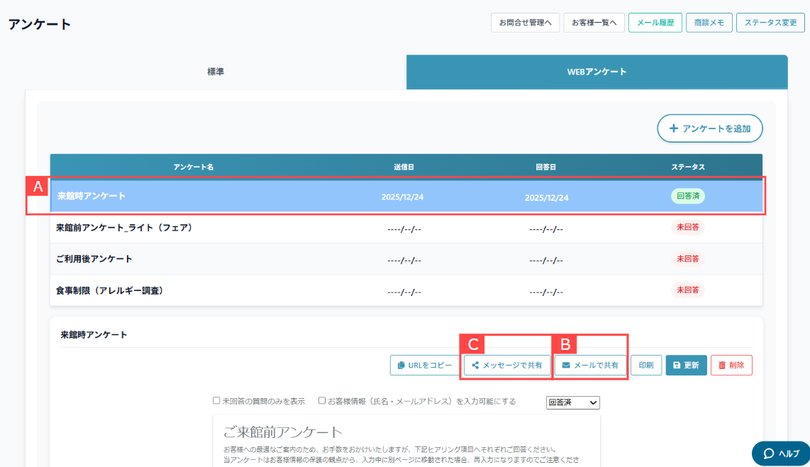 ②アンケートURLをメールで顧客へ送信できます。【B】