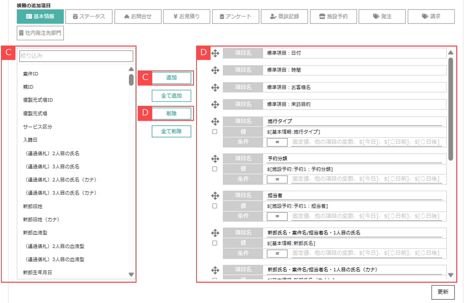 ③お客様一覧に出力したい項目を選択し、追加します。