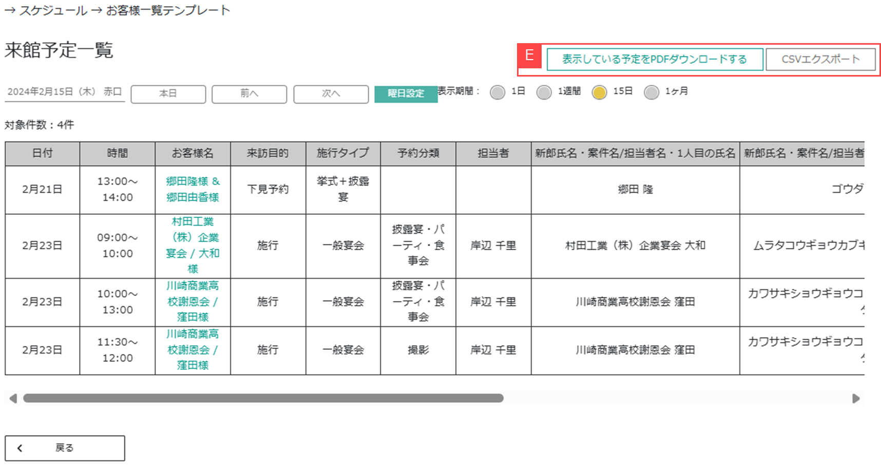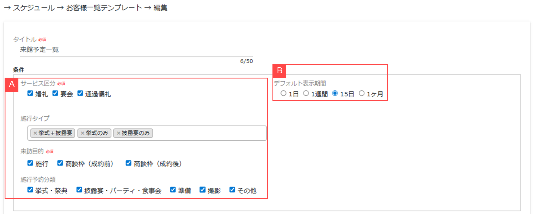 スケジュール >お客様一覧テンプレート > 新規登録 / 編集