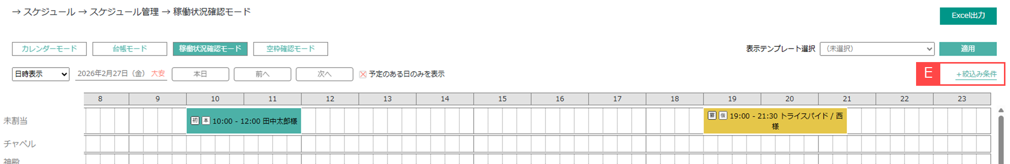 ⑦表示させるスケジュールを絞り込むことができます。【E】