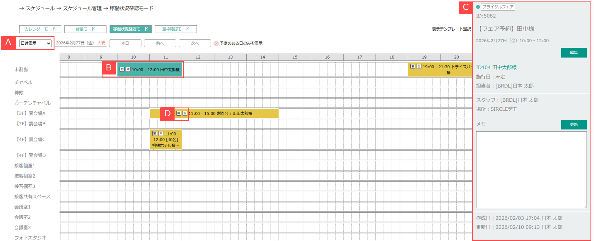 スケジュール > スケジュール管理 > 稼働状況確認モード