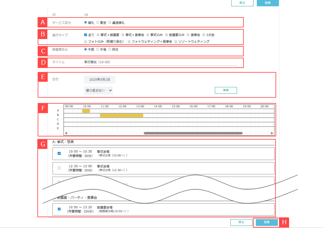 ⑦チェックした受入枠の時間帯を表で確認することができます。【F】