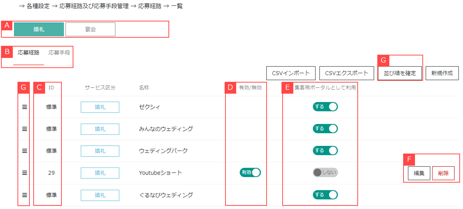 各種設定 > 応募経路及び応募手段管理 > 応募経路一覧 / 応募手段一覧