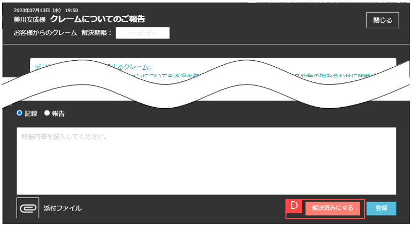 ③社内連絡機能で作成されたメッセージを「解決済み」に変更する権限者を設定できます。【B】