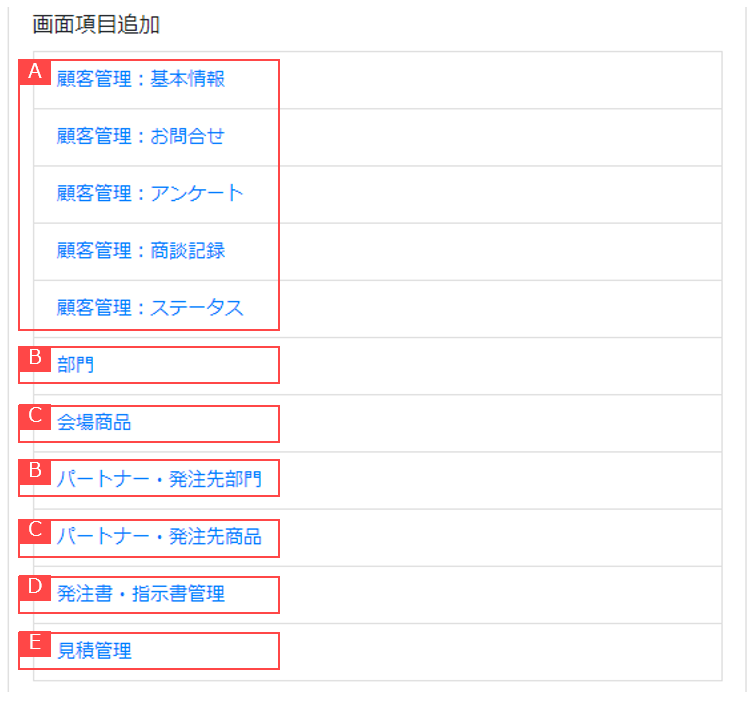 ④会場商品 / パートナー・発注先商品へ項目を追加できます。【C】