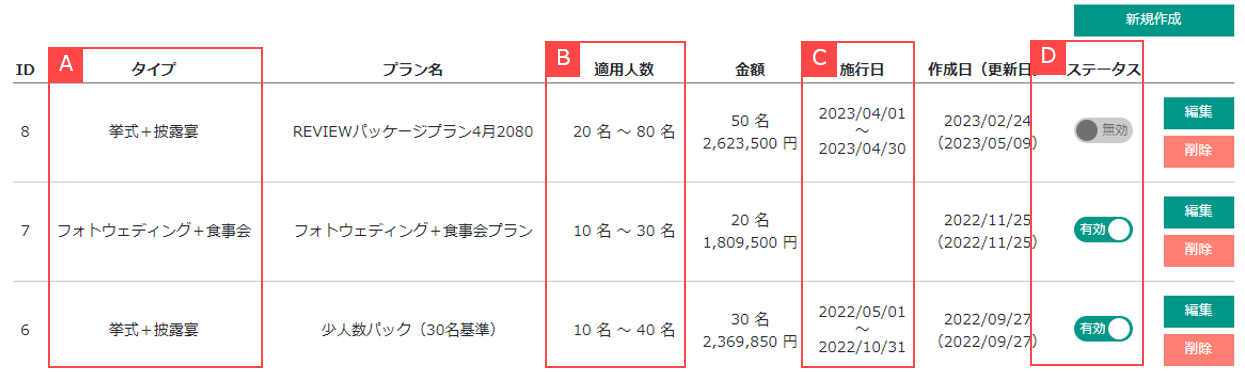 見積り > パッケージプラン登録 > 一覧