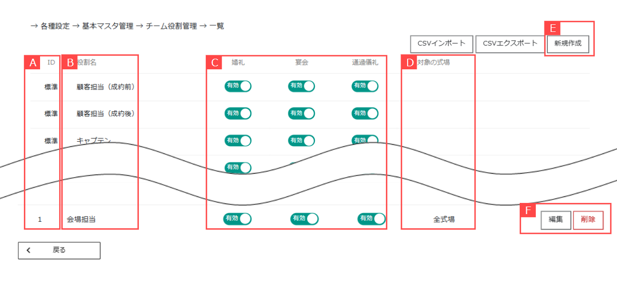各種設定 > 基本マスタ管理 > チーム役割管理