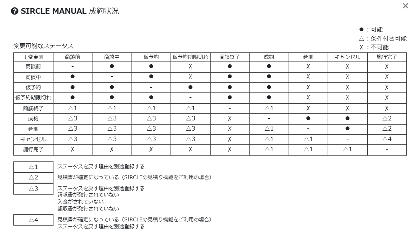 各成約ステータスでは、そのステータスに応じた処理のみが可能となっており、