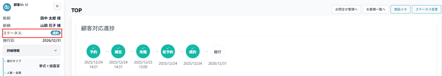 成約が確定した顧客のステータスです。