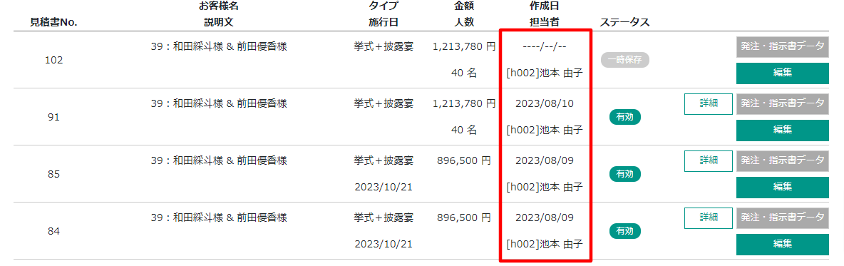 ・作成日 : 見積書の登録が完了した日付が表示されます。