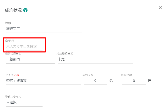 ・変更日 : ステータス変更時に任意で入力可能な日付です。