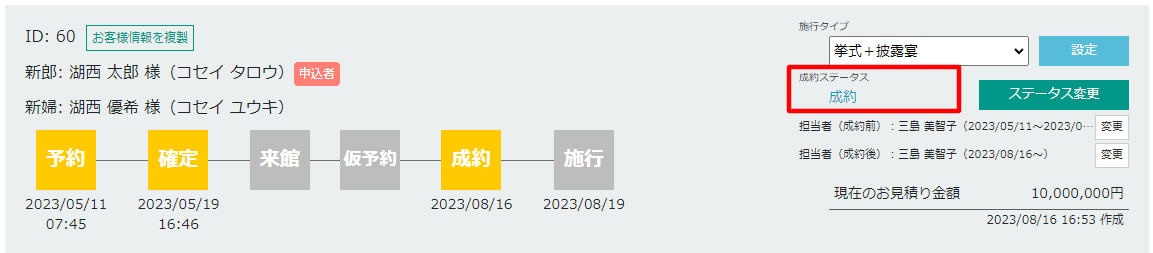 顧客データの成約ステータスの変更履歴を表示します。