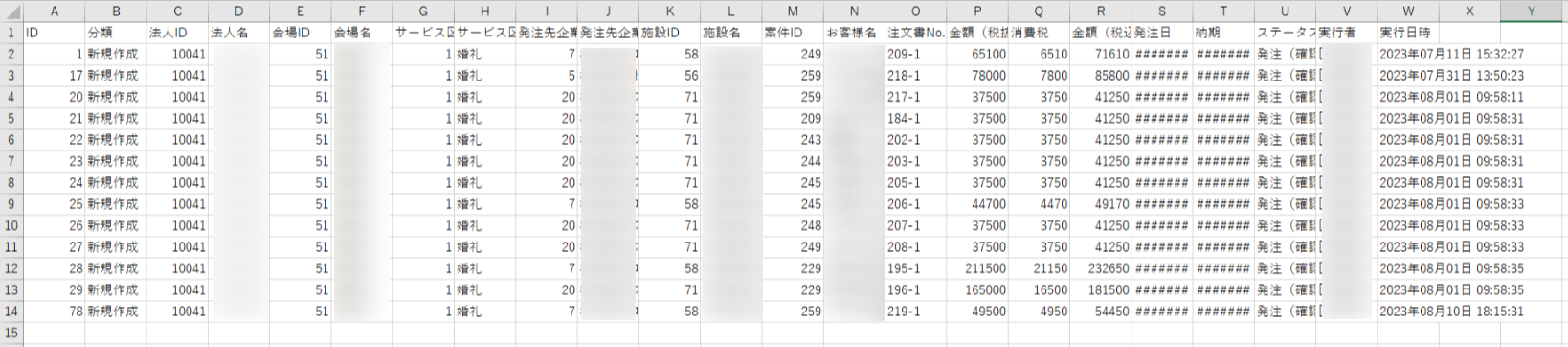 ・会場ID・会場名 : 操作が行われた式場を表しています。