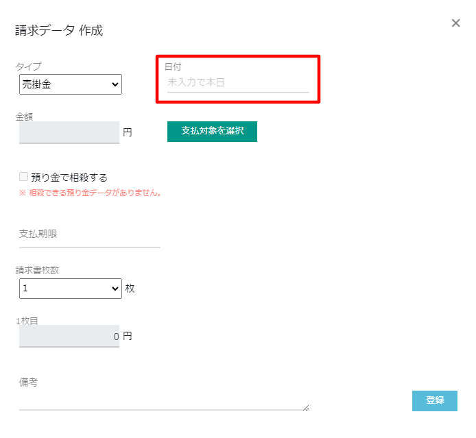 ※ 請求日は任意の日付を入力可能です。