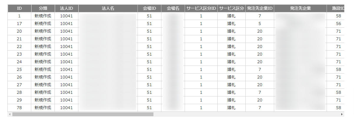 ・法人ID・法人名 : 操作が行われた式場の法人を表しています。