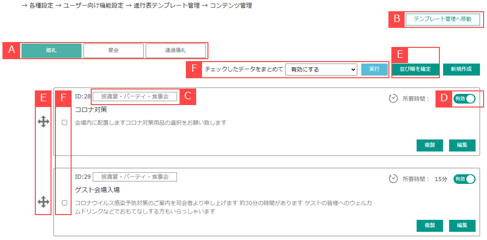 各種設定 > 進行表テンプレート管理 > コンテンツ管理