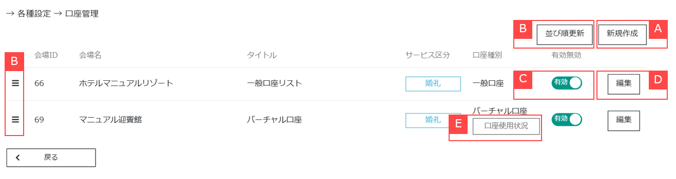 各種設定 > 口座管理
