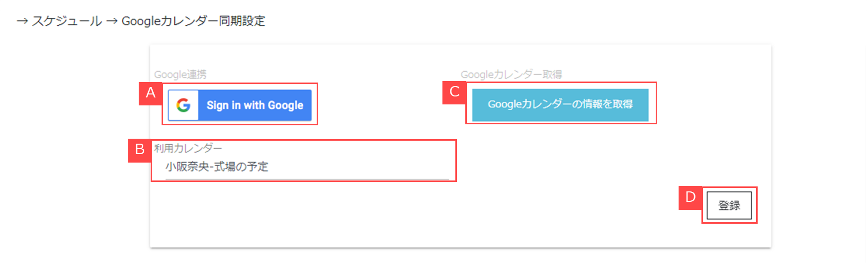 ④Googleカレンダー上で編集された予定の更新情報をSIRCLEに取り込みます。【C】