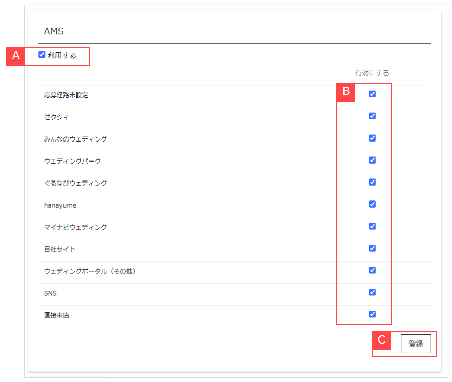②連携したい応募経路にチェックします【B】