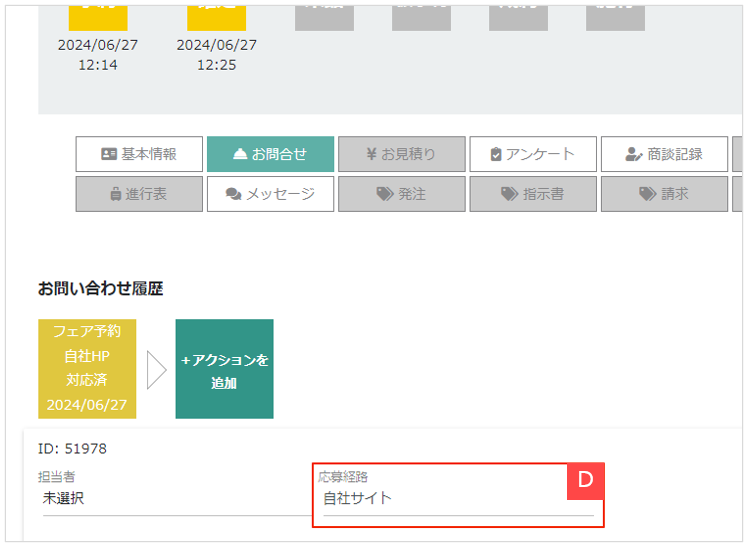 お客様 > 婚礼お客様管理 > 詳細情報 > お問合せタブ