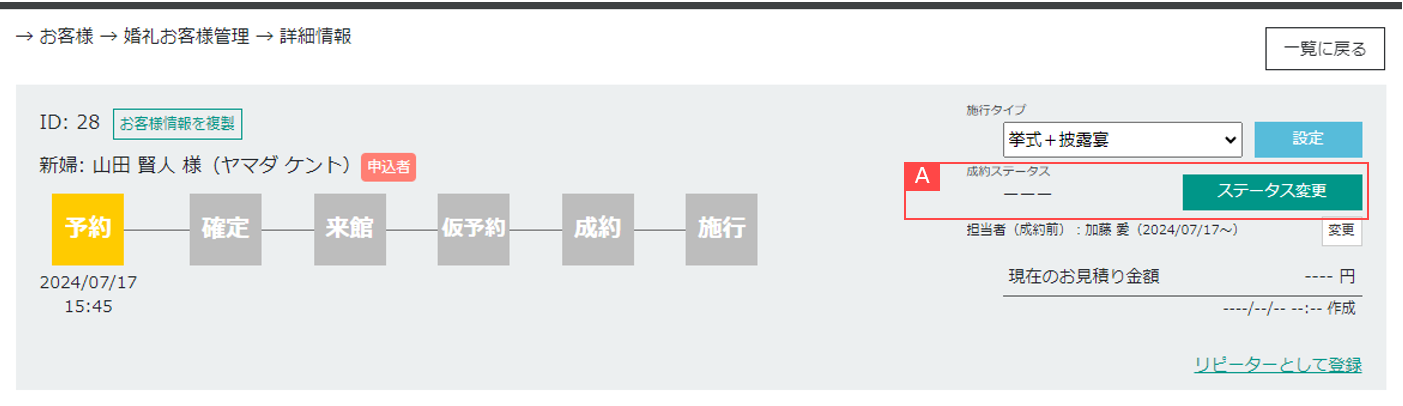 = 成約ステータスが「仮予約」以前の施行件数【A】