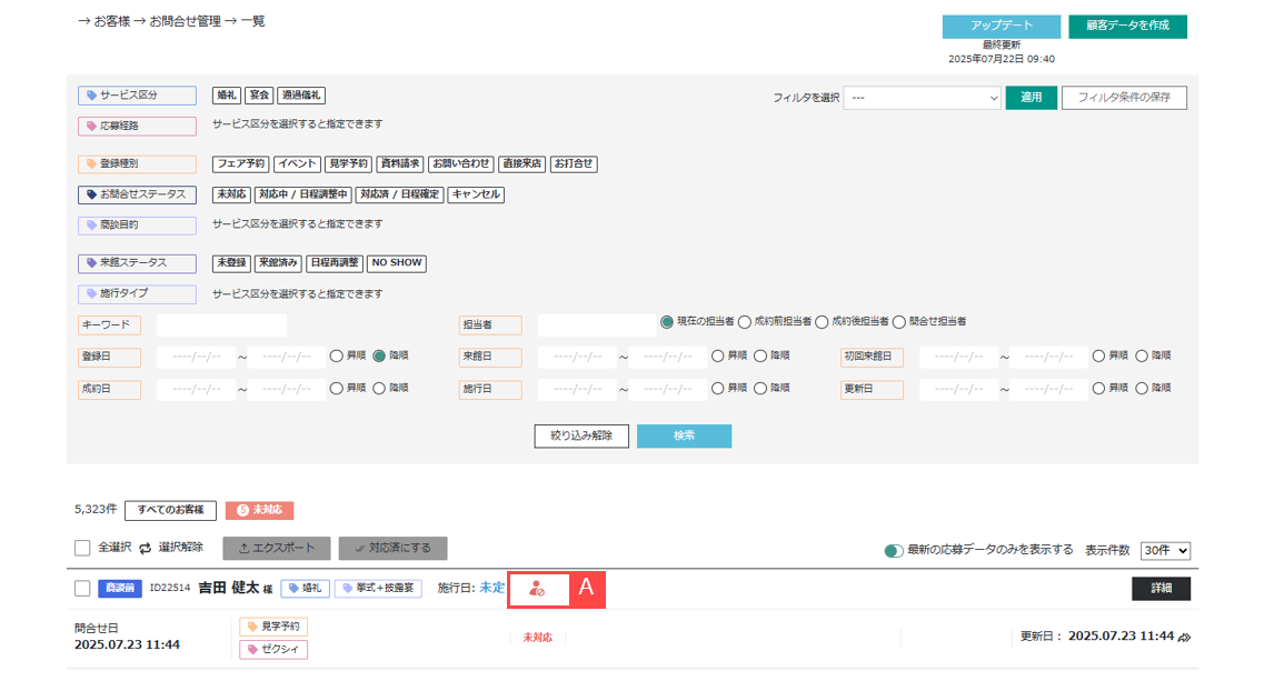 お客様 > 婚礼お客様管理 > 顧客詳細 >お問合せ