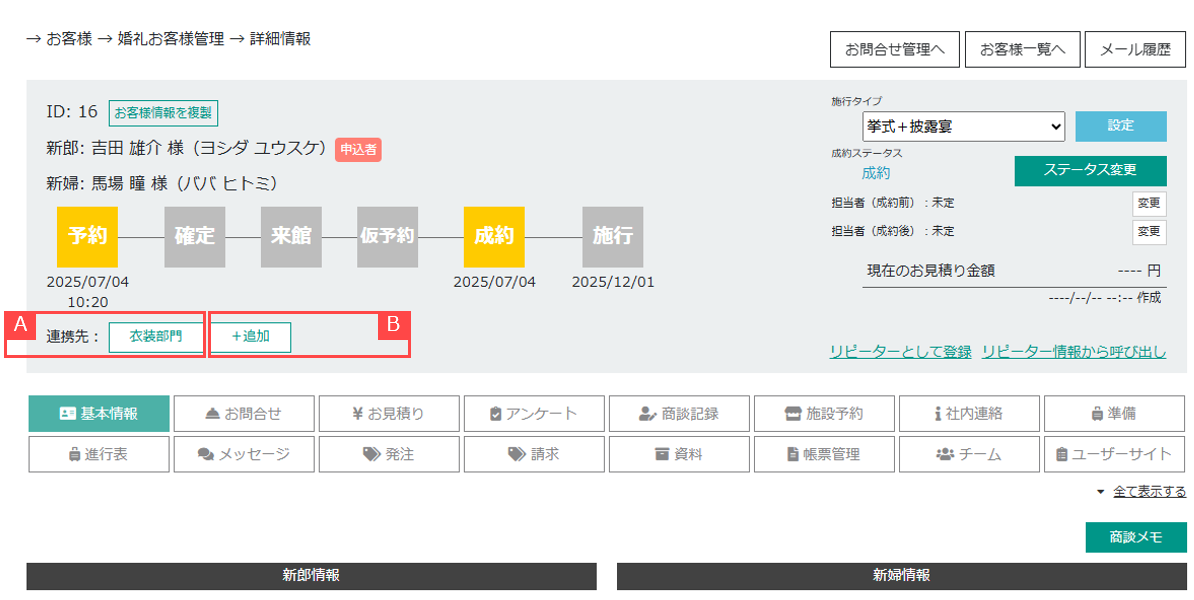 お客様 > 婚礼お客様管理 > 顧客詳細