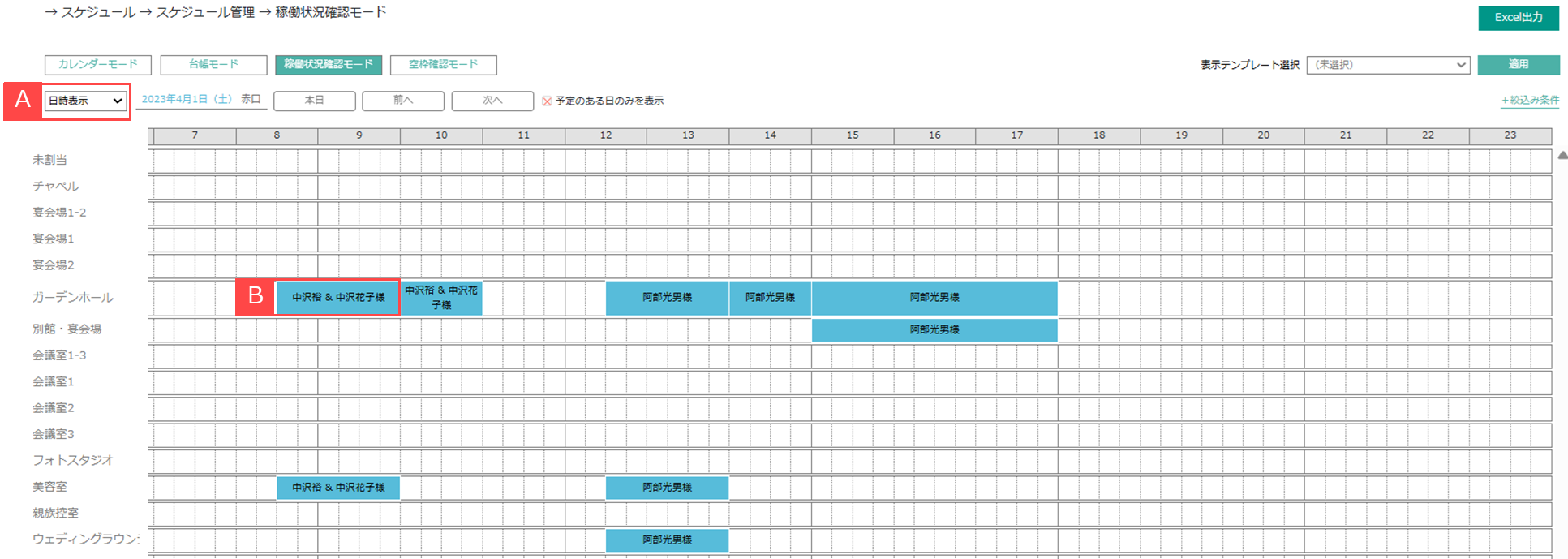 スケジュール > スケジュール管理 > 稼働状況確認モード